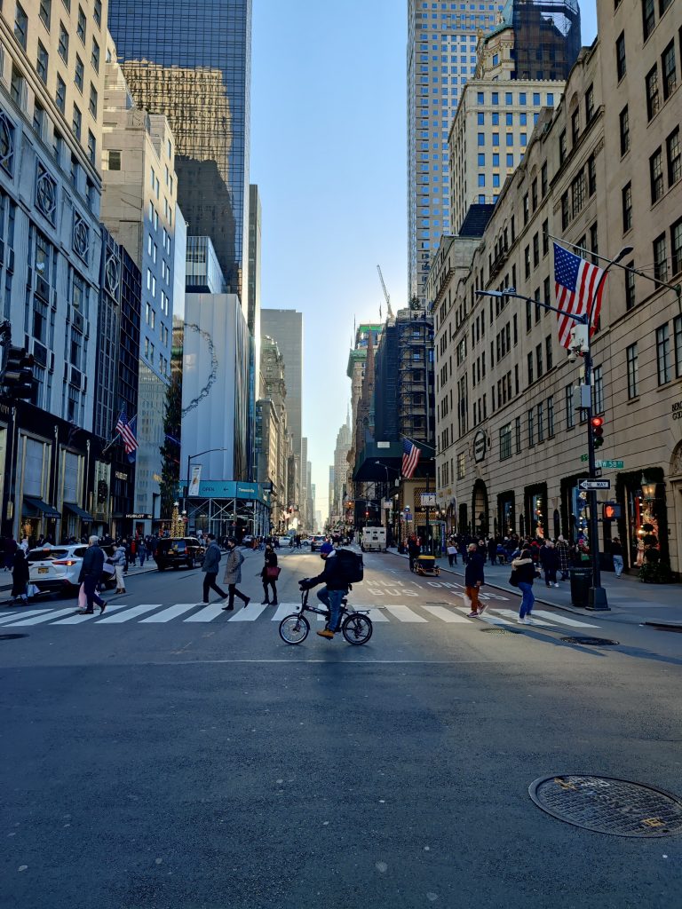 Nach New York kann man sicherlich das ganze Jahr über reisen, denn das Wetter ist unserem in Deutschland recht ähnlich. Wir waren in der Vorweihnachtswoche dort, womit ich mir einen Kindheitstraum erfüllt habe – New York zu Weihnachten 🙂 In unserem Fall hatten wir tatsächlich unglaubliches Glück, denn bis auf einen Tag etwas Regen, hatten wir ununterbrochen blauen Himmel, strahlenden Sonnenschein und recht angenehme Temperaturen um die 0 Grad Celsius. Aber auch ein Besuch im Sommer steht definitiv auf unserer Liste.